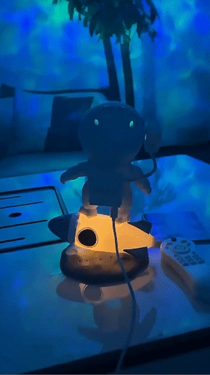 El Proyector con forma de Astronauta es tu pasaporte a un viaje estelar, Experimenta una aventura cósmica única con proyecciones en alta definición de galaxias, agujeros negros, planetas, nebulosas y asteroides.